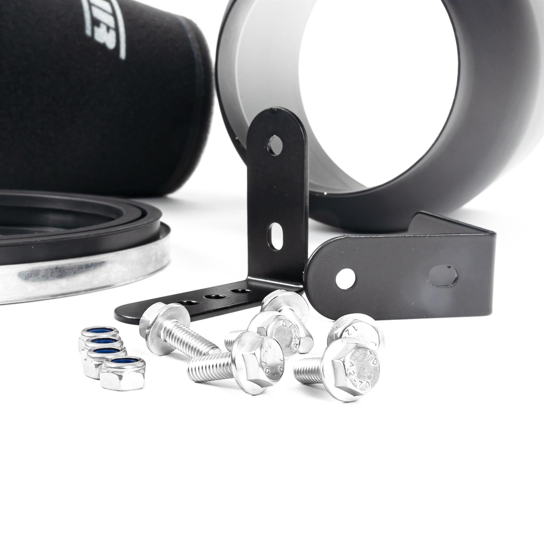 The aluminium enclosure shields against hot air keeping the intake temperatures low, while the bell mouth smoothes the airflow and significantly improves the performance.